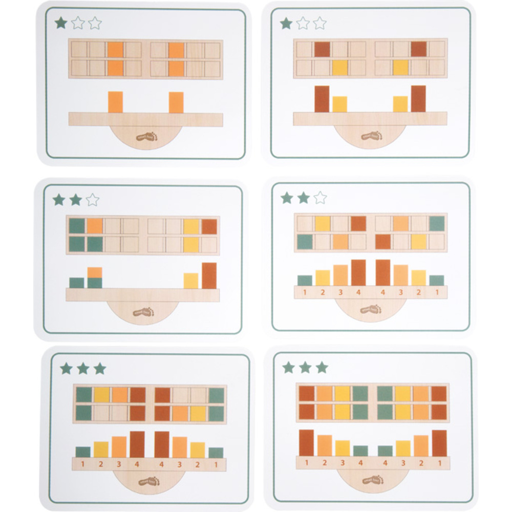 Le jeu se compose d’une bascule numérotée et de blocs de densités variées. L’enfant peut jouer librement pour expérimenter la gravité ou suivre les fiches modèles (incluses) proposant des défis de difficulté progressive. L’objectif est de trouver la combinaison parfaite pour que la balance soit à l’horizontale, favorisant l’autocorrection.
