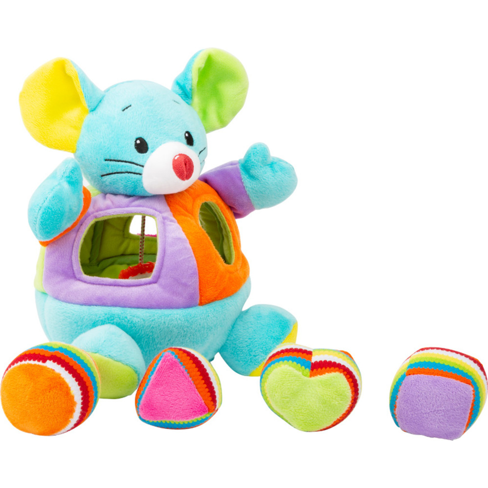 - Contenu : 1 souris en peluche (rangement), 4 formes géométriques sensorielles.