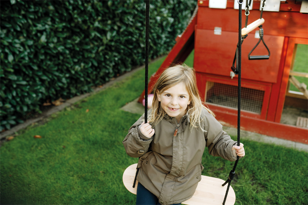 Cette balançoire en bois massif se distingue par sa large surface d’assise (58 cm), permettant une utilisation confortable pour les enfants comme pour les adultes. Sur le plan moteur, le balancement stimule intensément le système vestibulaire (sens de l’équilibre), favorise le tonus postural et la coordination des mouvements. Les rainures antidérapantes sur l’assise sécurisent la position de l’enfant.