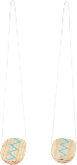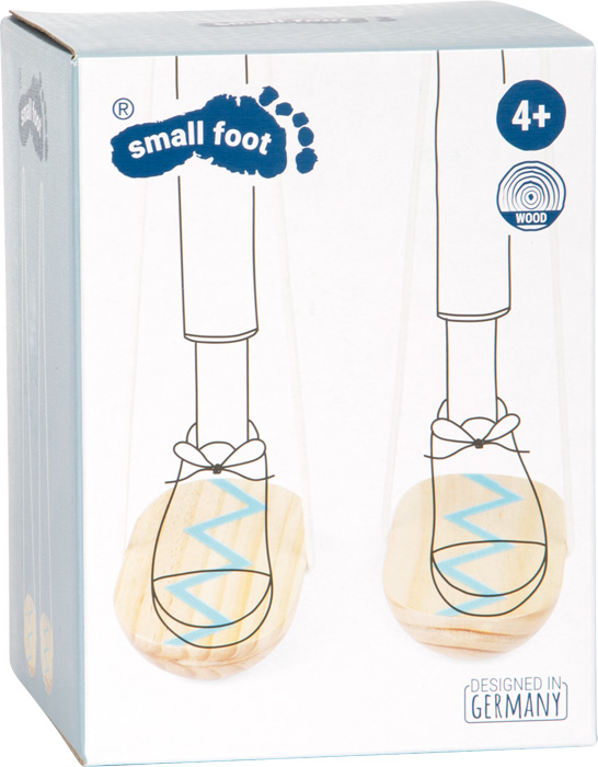 Mini-échasses en bois avec cordes ajustables pour varier la difficulté.