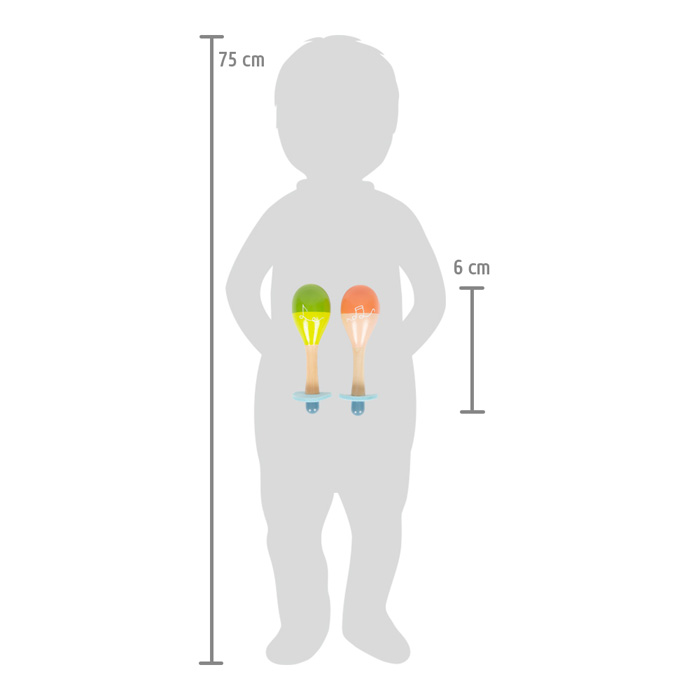 Ces maracas sont spécialement conçues pour l’éveil musical des tout-petits dès 12 mois. Elles permettent de travailler la préhension palmaire et la coordination geste-son, offrant une introduction intuitive au rythme et à la causalité. Leur forme organique facilite la prise en main par les jeunes enfants, sollicitant ainsi leur motricité fine tout en stimulant leur acuité auditive.