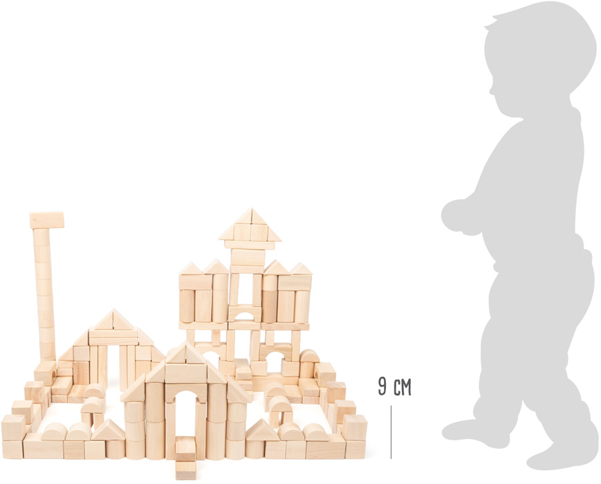 - Contenu : 200 blocs de bois naturel, 1 sac de transport en lin.