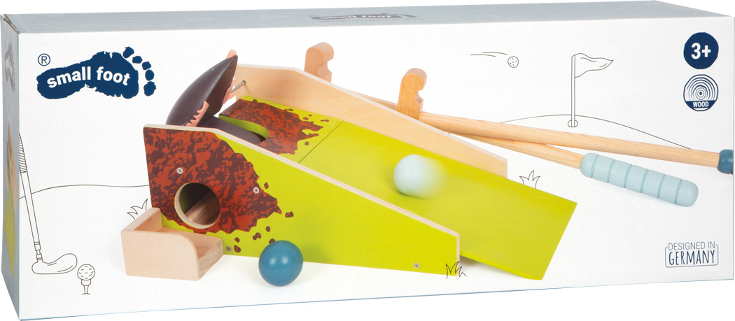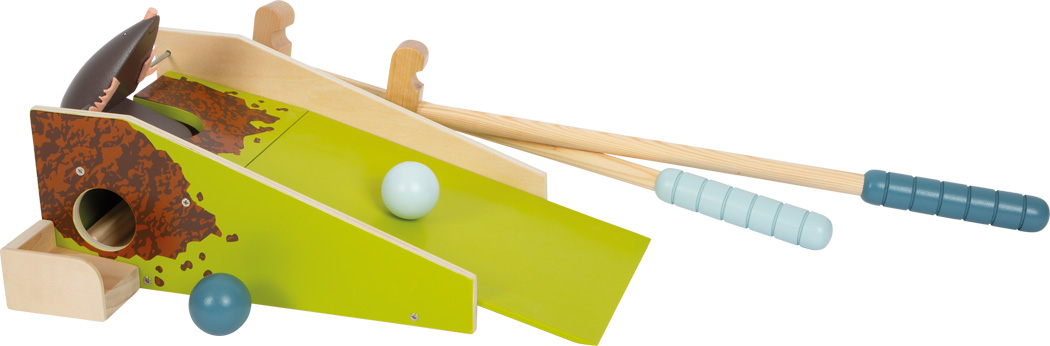 • Contenu : 1 base avec rampe et mécanisme taupe, 2 clubs, 2 balles en bois.