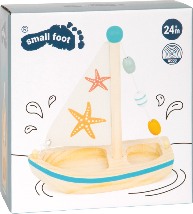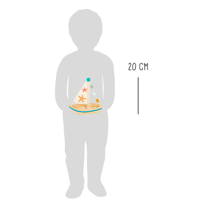 - Contenu : 1 voilier en bois avec mât et voile textile.